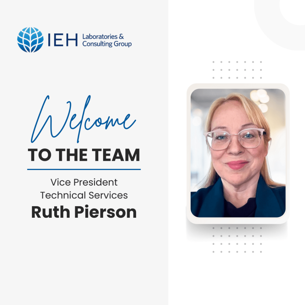 IEH Laboratories & Consulting Group proudly welcomes Ruth Pierson as Vice President of Technical Services.